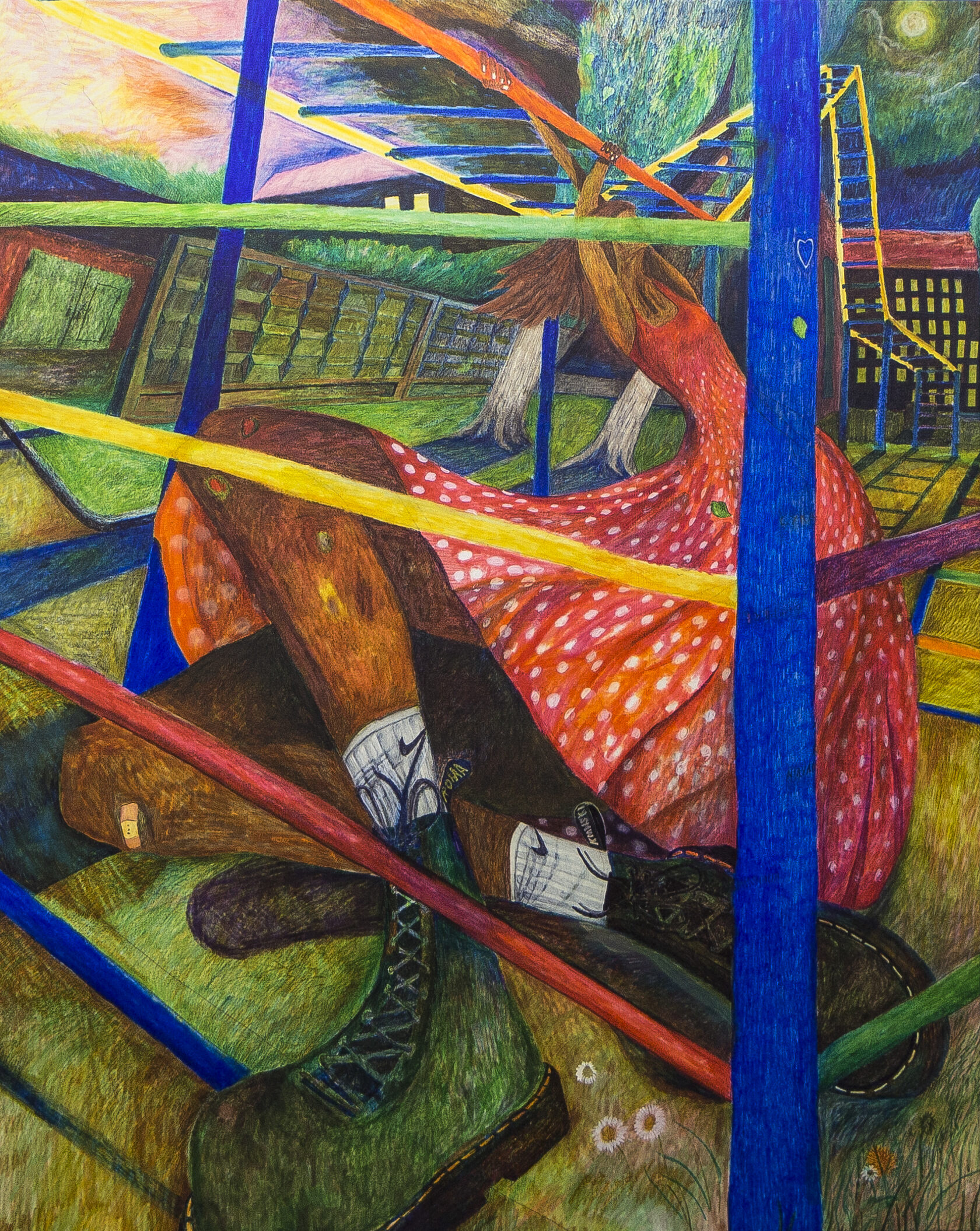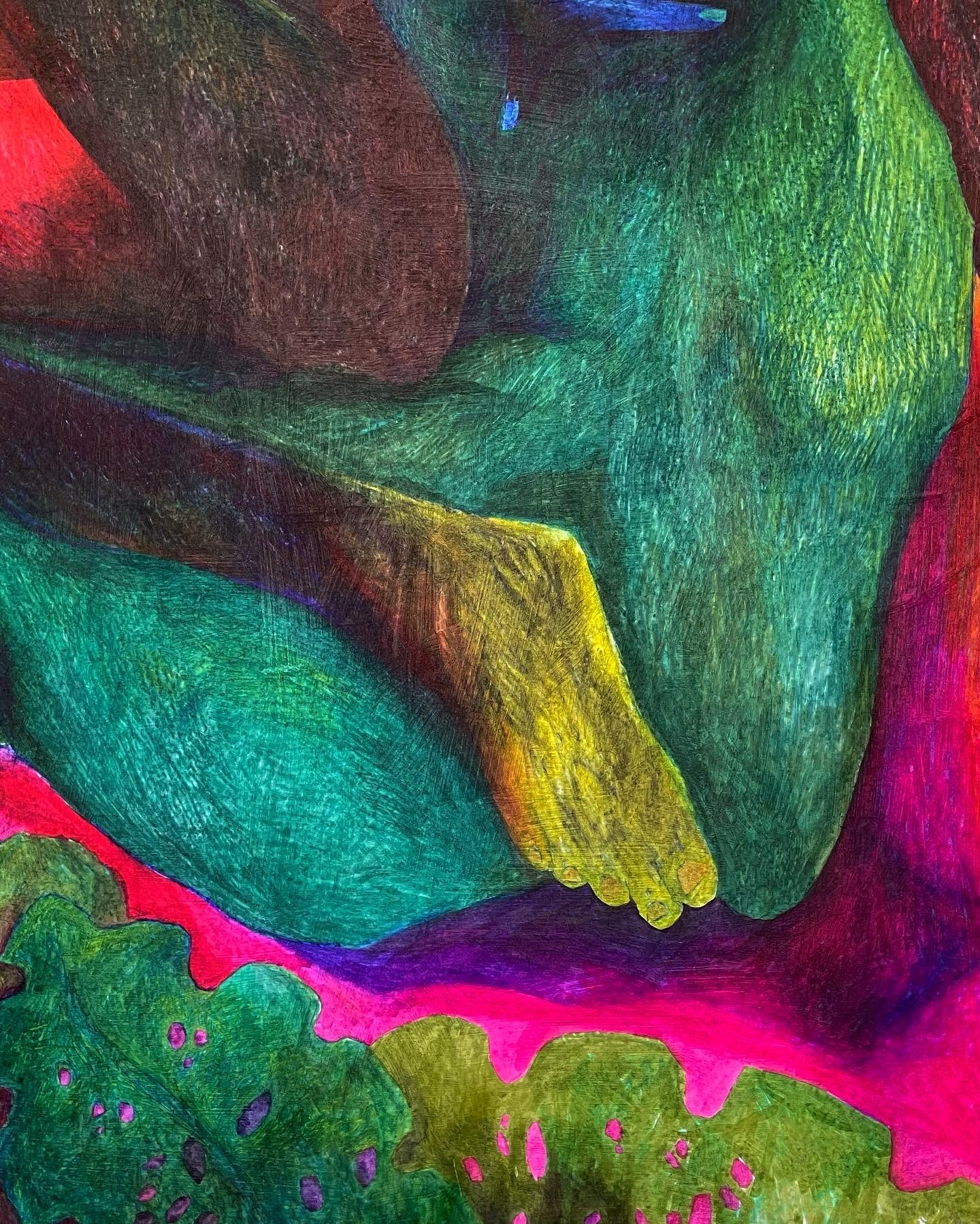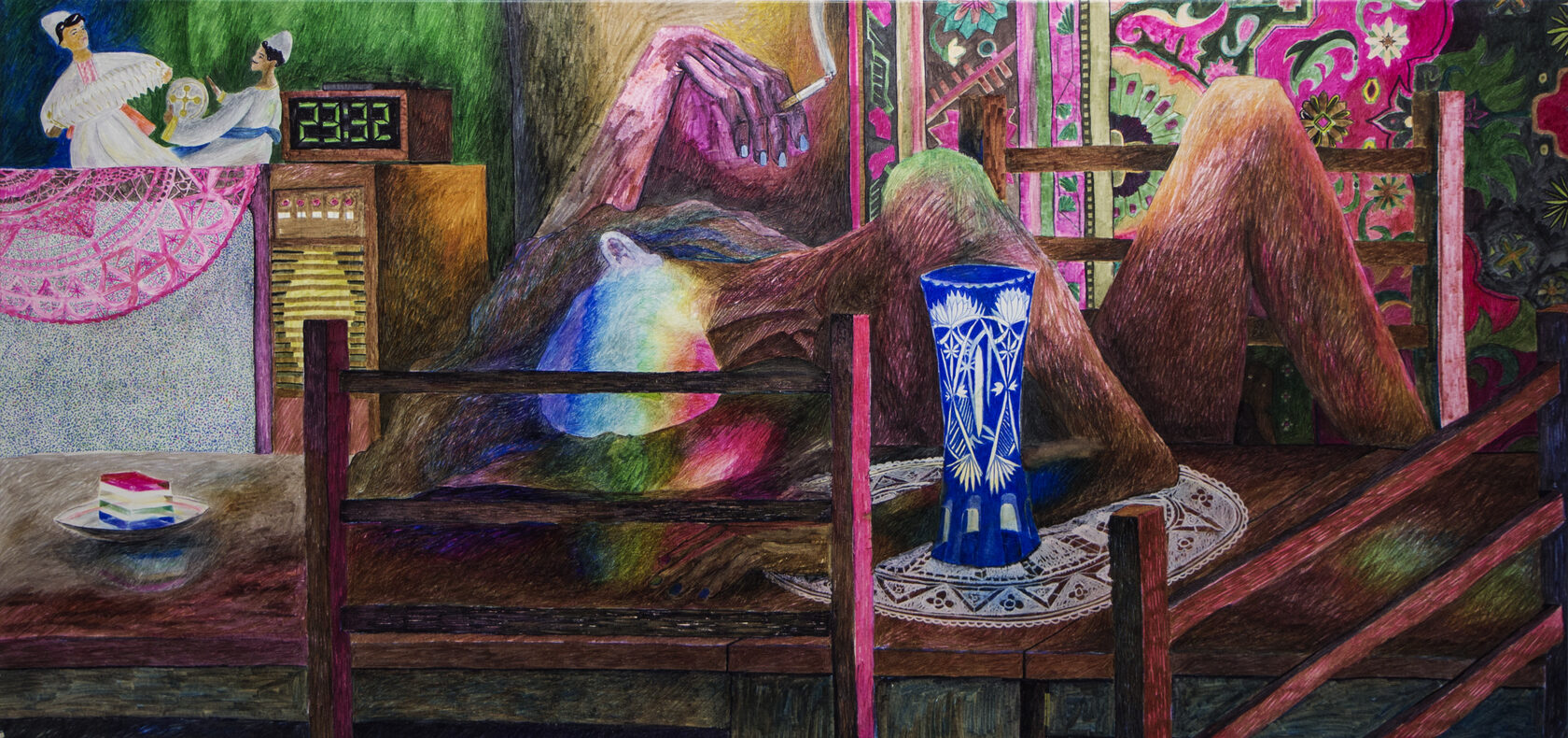 Due to their low color density, the markers perfectly overlap each other with half-tones, gradations, which allowed me to work with numerous layering of colors. This process is similar to «knitting with colors».