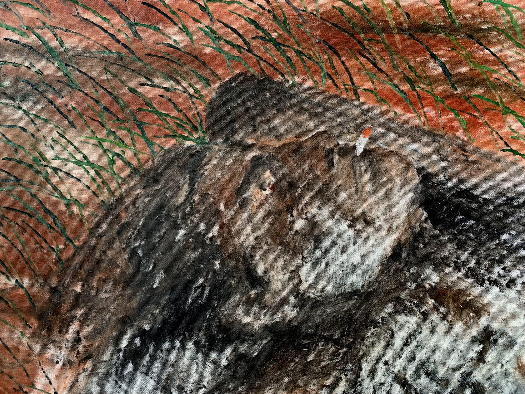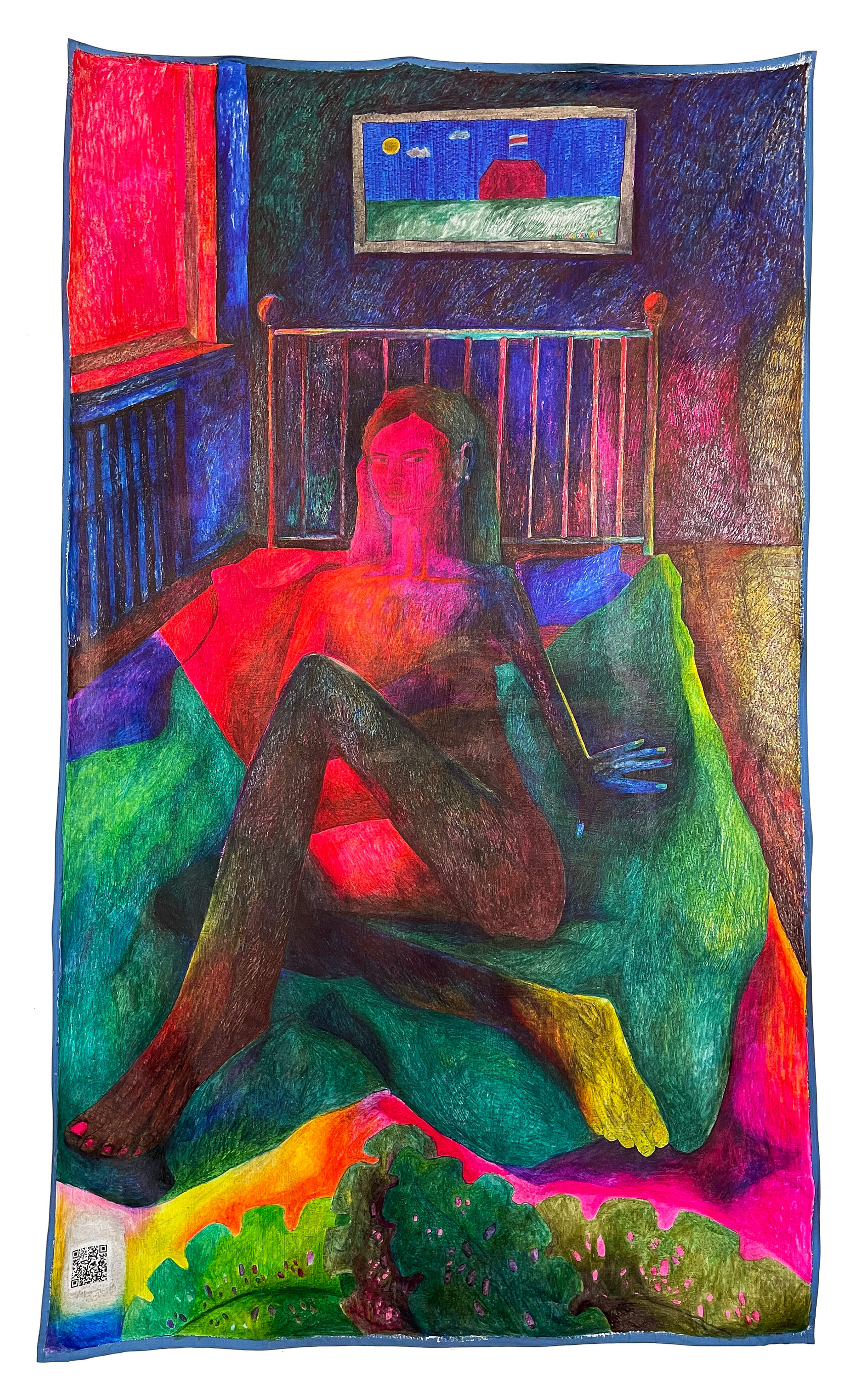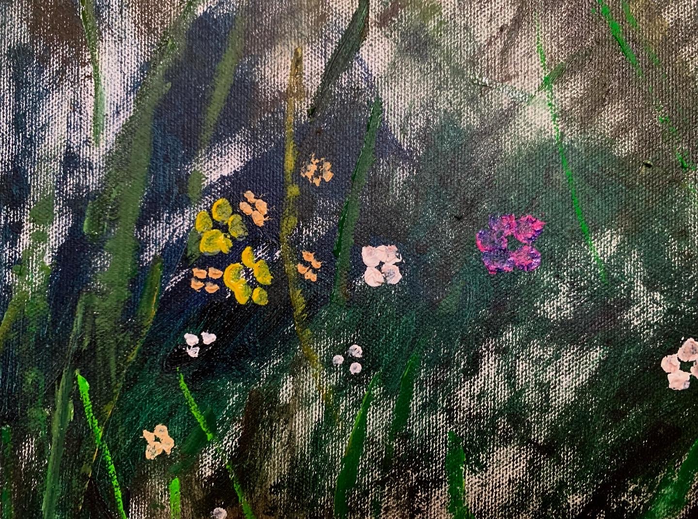 So, through sketches painted with felt-tip-pens on paper, I switched to large canvases. Felt-tip-pens for me are a symbol of bright, magical, children's drawings